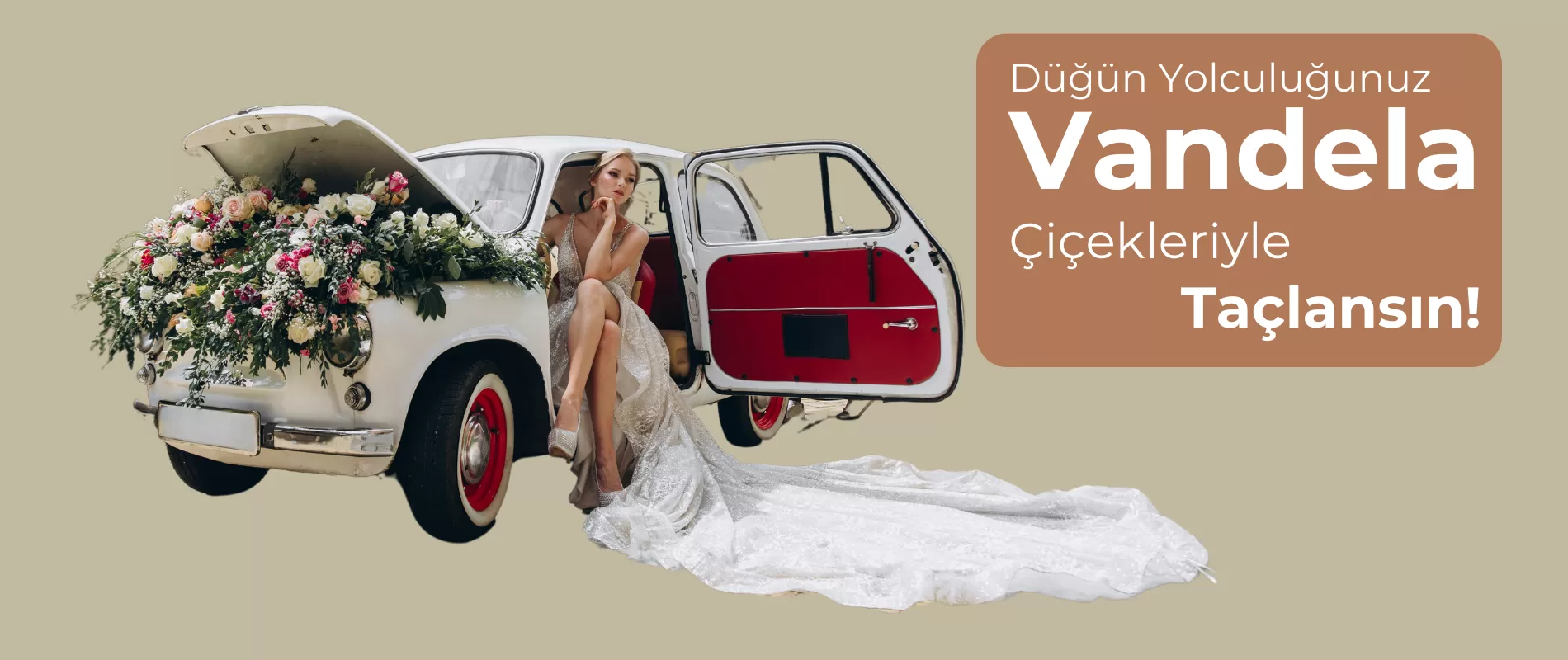 Gelin arabalarımız, Vandela Çiçekçilik imzası taşıyan özel çiçek tasarımlarıyla donatılmıştır. Her detay özenle seçilir ve çiçeklerle süslenir, böylece siz ve sevdikleriniz düğün mekanına gelirken bir çiçek rüyasının içinde yol alırsınız.